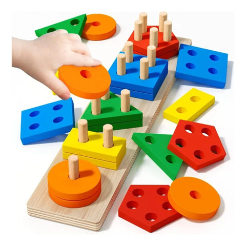 • Enhances fine motor skills through grasping and stacking the shapes.