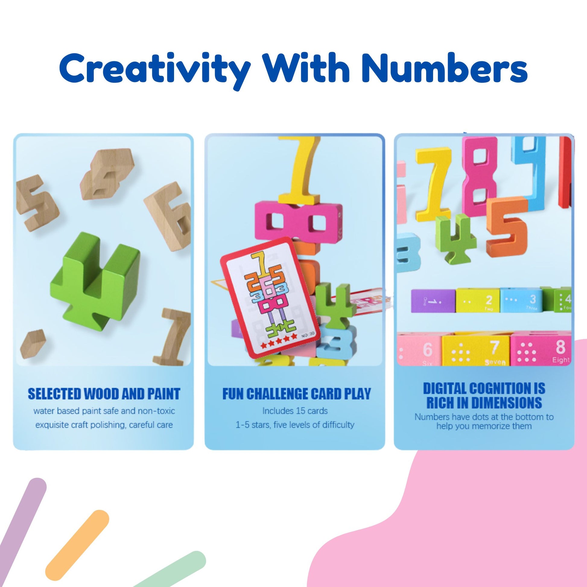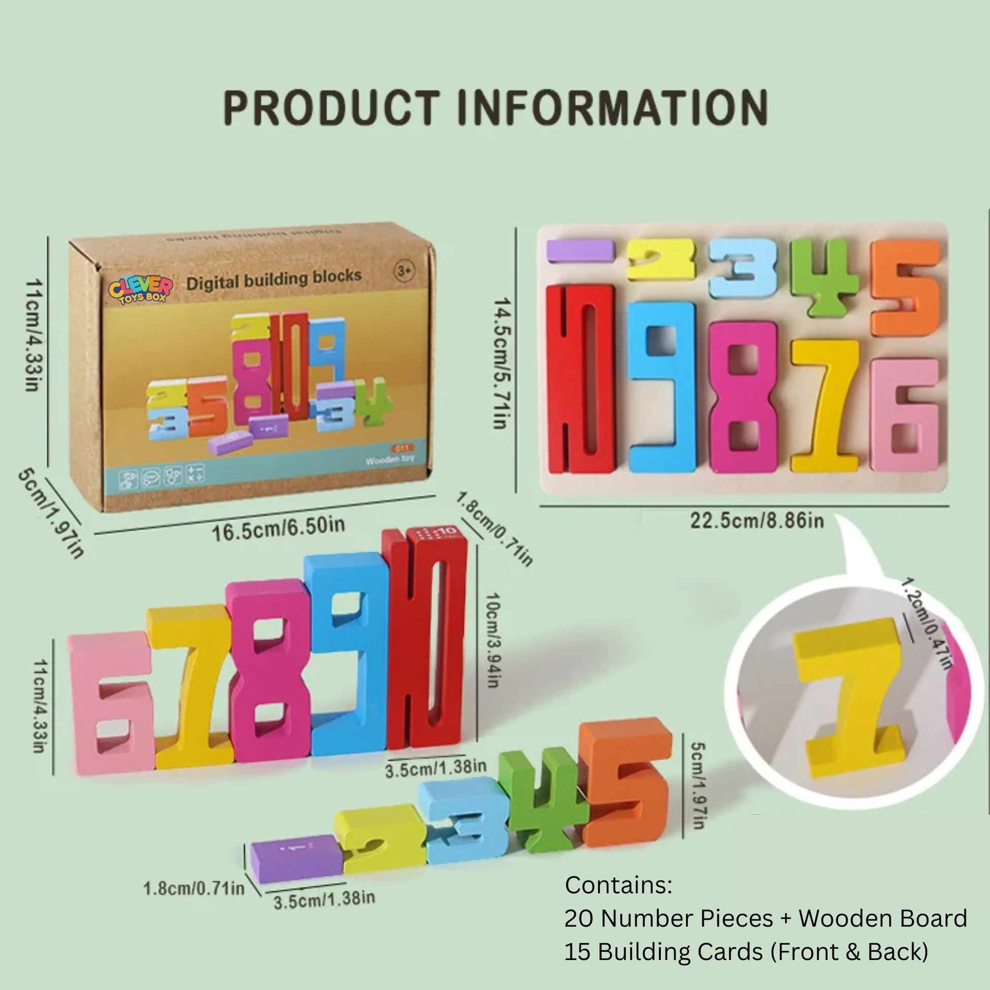 • Contains: (20) Wooden Numbers, (15) Building Cards, (1) Wooden Board